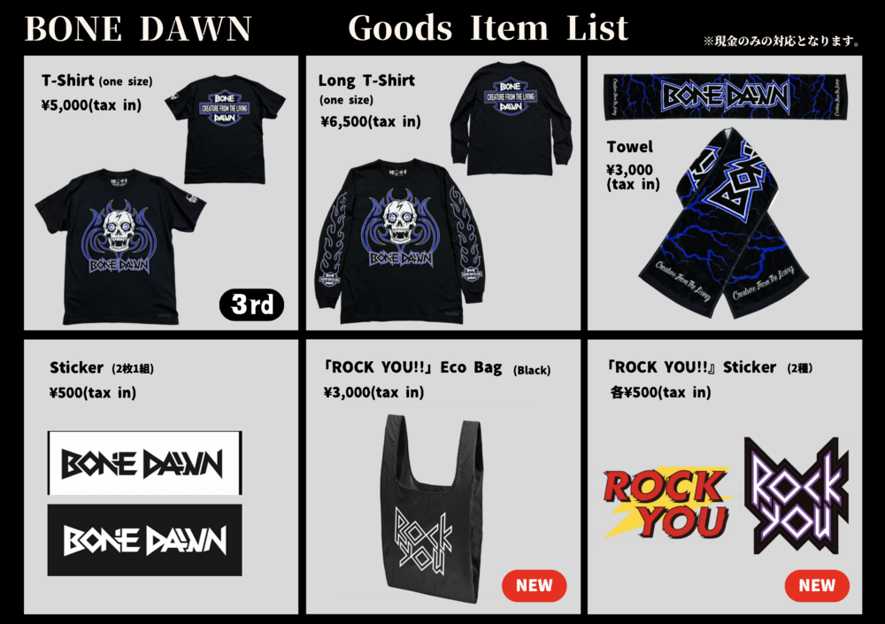 10/24(金)開催の2nd GIG「Cool You!!」では、下記の時間にて物販を行います。